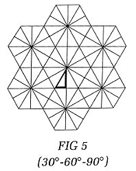 by Charles Karadimos There are 2 basic systems of mirrors in kaleidoscopes, the 2-mirror which produces one central image and the 3-mirror which produces images reflected throughout the entire field of view. Both are set up in a triangular configuration-in a tube similar to a prism. Considering the 2-mirror system first, the 2 mirrors are arranged in a "V" with the third side of the triangle a blackened, non-reflective surface. The angle of the "V" determines the number of reflections contributing to the overall intricacy of the pattern. In an attempt to show what happens in a kaleidoscope consider the following example. Circle with center 0-Mirrors OA and OB. An object placed in Triangle OAB (actual image) is reflected off OA into its relative position in Triangle OHA (virtual image) and off OB into its relative position in Triangle OBC. The virtual image in Triangle OHA is reflected off the imaginary OH into its relative position in Triangle OGH - which is reflected off OG into its relative position in Triangle OFG. This continues the same way around the circle from Triangle OBC to Triangle OCD to Triangle ODE. The virtual image in Triangle OEF is a reflection from the combination of OF and OE. In order for the symmetry to be adhered to, it is critical that the angle AOB be such that it evenly divides the 360o of the circle. If it does not, then the reflections from OF and OE in Triangle OEF would not correspond. An inaccurate overlap would inherently destroy the closure of the symmetric pattern. Therefore a basic rule of thumb in a 2-mirror scope is that the angle of the mirrors must evenly divide the 360o of a circle. So, starting with a 90 degree angle, the image produced would have 4 fold symmetry (FIG 2). The 3-mirror system reacts similarly to the 2-mirror with one major exception. A third mirror replaces the blackened side of the triangle in the 2-mirror and produces a continuation of reflections throughout the entire field of view. Symmetrical images are much harder to achieve in 3-mirror systems because now there are 3 angles which must be accurate instead of only the one angle in the 2-mirror design. Again it is important that the mirrors be set at an angle which can be evenly divided into the 360 degrees of the circle; such as 90 degree, which divides into 360 degrees 4 times, or: The other important rule which governs symmetry throughout is that the sum of the 3 angles must total 180 degrees (the total number of degrees in a triangle). Using both these rules, only 3 combinations produce the desired effect. The most common and simplest arrangement is the 60 - 60 - 60 equilateral triangle. Here each angle produces 6 fold patterns which results in a design (FIG3) of continuous triangles. The second combination is the 45 - 45 - 90 isosceles right triangle. This relationship produces 8 fold patterns at the 45 degree angles and a 4 fold pattern at the 90 degree angle, effectively producing continuous square patterns (FIG 4). The third and most interesting is the 3O - 60 - 90 right triangle. In this case all 3 angles are different, thus enabling 3 different symmetries (30 degree - 12 fold; 60 degree - 6 fold; 90 degree - 4 fold) to combine and form patterns as in FIG 5. One added note for 3-mirror configurations: the systems discussed above consider pure symmetrical patterns where each image - actual & virtual - link together. Interesting patterns are achieved however, even if only one or two of the angles follow the rule of even divisibility into 360o. The resulting pattern remains visibly symmetric. However, the continuing design generated by the odd angle or angles only show fractional parts of the actual image. Other systems, such as square 4-mirror configurations produce repeated square patterns while 4-mirror rectangular configurations produce repeated rectangular patterns. The images created are striped patterns since the reflections move directionally up, down, right and left. Cylindrical tubes lined with a reflective material will produce a spiralling effect. Since there are no angles involved in this style, the reflection seems to climb through the tube asymmetrically. Tapered systems provide interesting results. For instance, by tapering the 3-mirror triangle (similar to a pyramid) and viewing through the large opening, a spherical 3-D appearance results. Viewing through the small opening, the actual and virtual images are enlarged to more visibly examine the objects in the object chamber. This also allows more light to enter the system, increasing the overall brightness. The polyangular arrangement is a variation of the 2-mirror design, whereby one or both of the mirrors can be adjusted, changing the angle of the "V" and thus the number of reflections. Within the same tube it is therefore possible to produce a wide range of symmetrical patterns. Even though other systems and configurations are quite possible, these basic formulas should help in the understanding of the various principles underlying kaleidoscope design and the great variations possible in the images which can be created. |