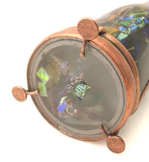 The object cell contain all handworked, hand selected glass along with dry filled ampules, maximizing the randomness, producing beautiful intricate images.