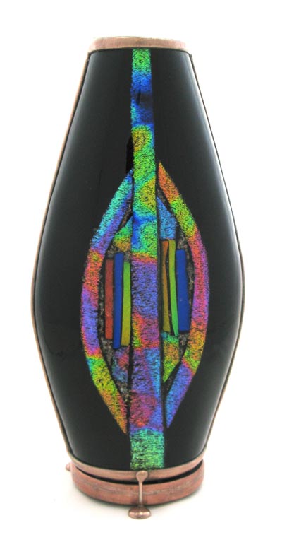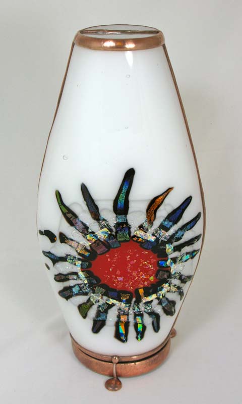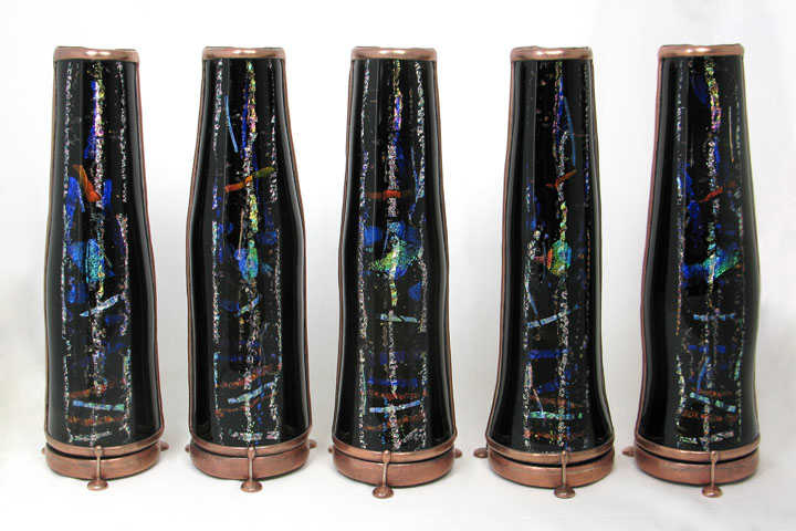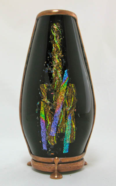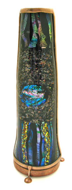 The exterior of the scope is multi-layered fused and slumped glass (gold metallic glass) standing 6” tall