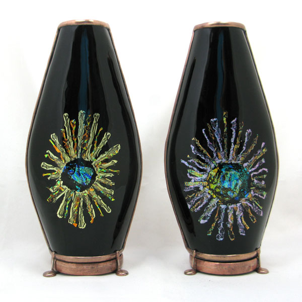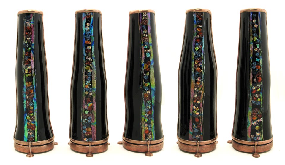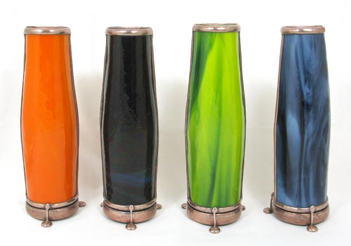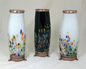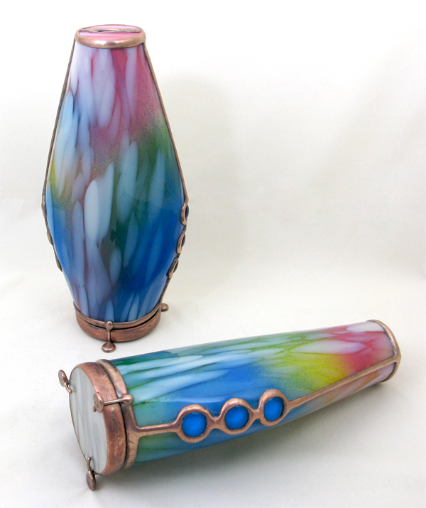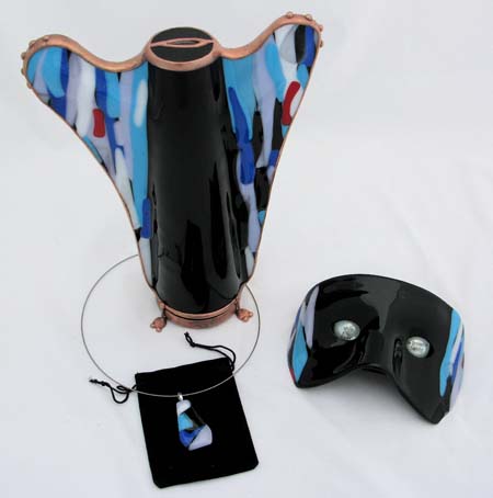 the hand made fused, lampworked, and cut glass.