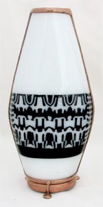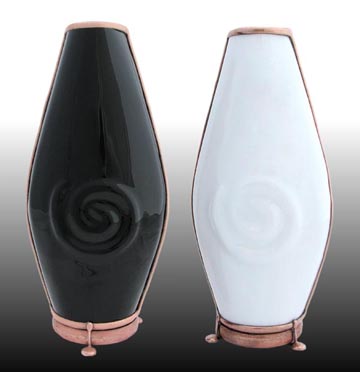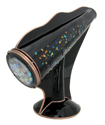 This parlor scope is very impressive both inside and out. The three-dimensional, slumped glass body features an embossed effect with a 6-point mandala running through the body of the cone-shaped scope. The images produced by the tapered two-mirror system produces breathtaking 15-point images. This scope is 14 inches tall and available in black or white. |