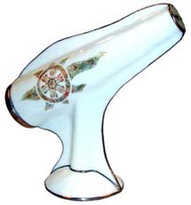 The exterior of this 4” glass kaleidoscope has offset, embossed half circles on either side of the slumped main cone making it very comfortable to hold. Similar to the Winged Mini Cone, the optics are produced by a two-mirror system and creates a very appealing and intricate 8 point image. This scope is available in a wide assortment of solid and patterned exterior colors. |